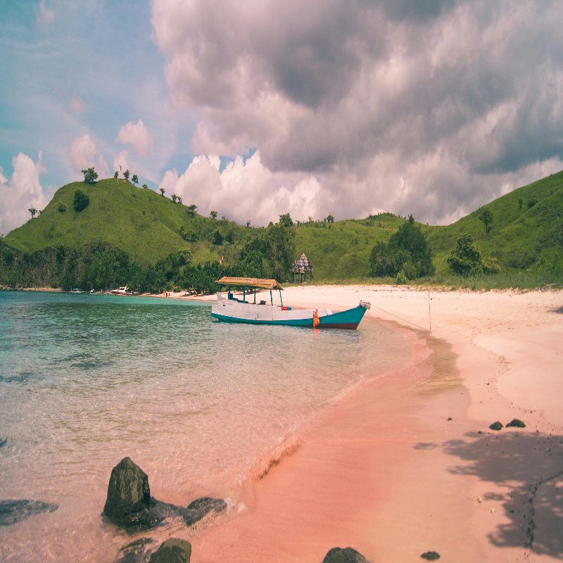 Flow in dark caribbean pink sand beach